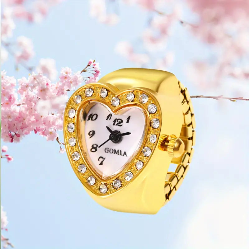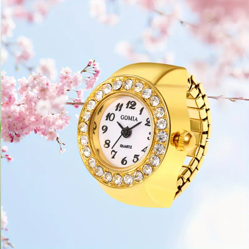**Student's Rhinestone Finger Ring Watch – Fashion Analog Finger Watch**
